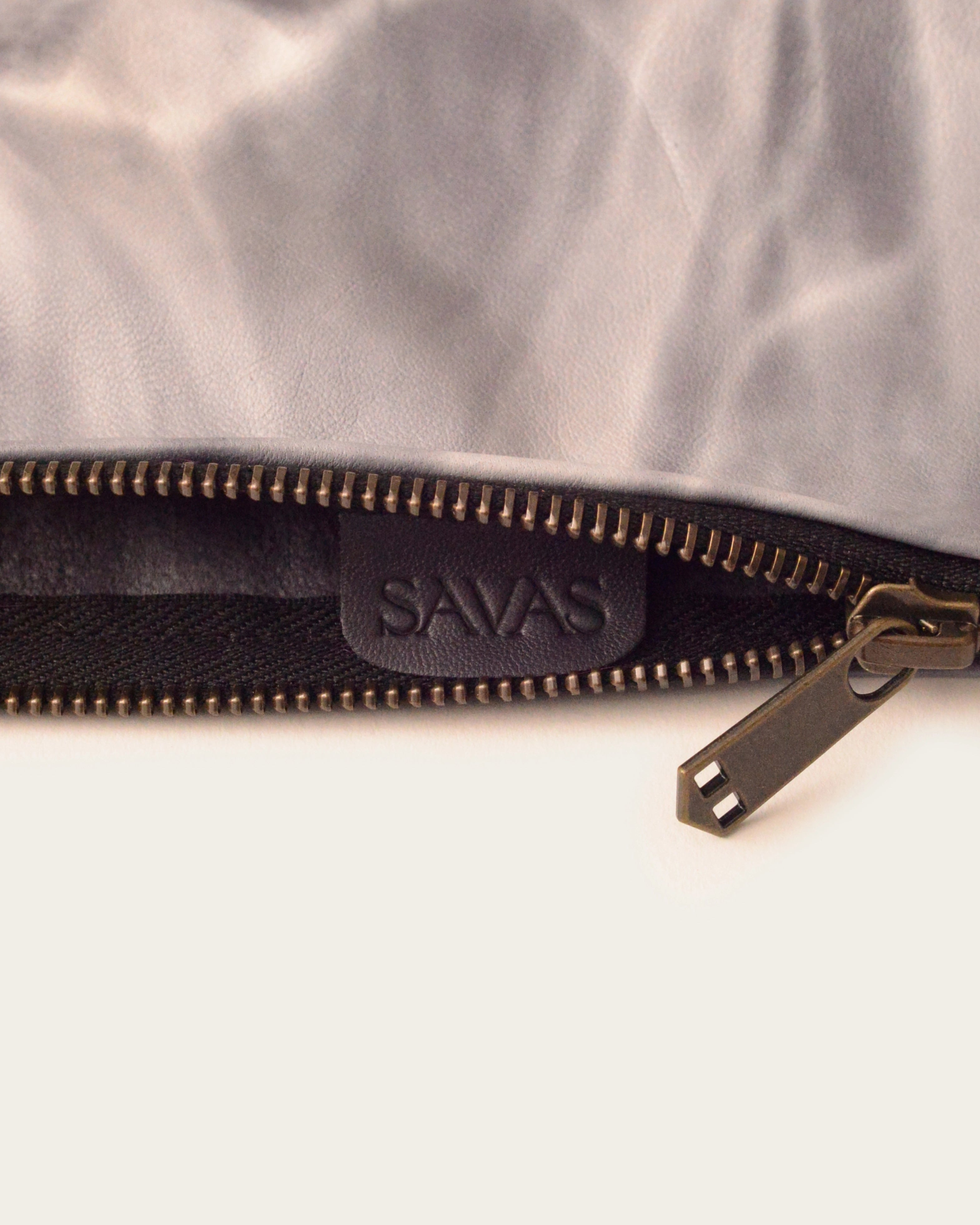 For all your carrying needs. These simple beautiful pouches make use of cuttings from our jackets. Each will be unique, and only a few are made in each color. Each pouch features a Savas "Two Dots" solid brass zipper.