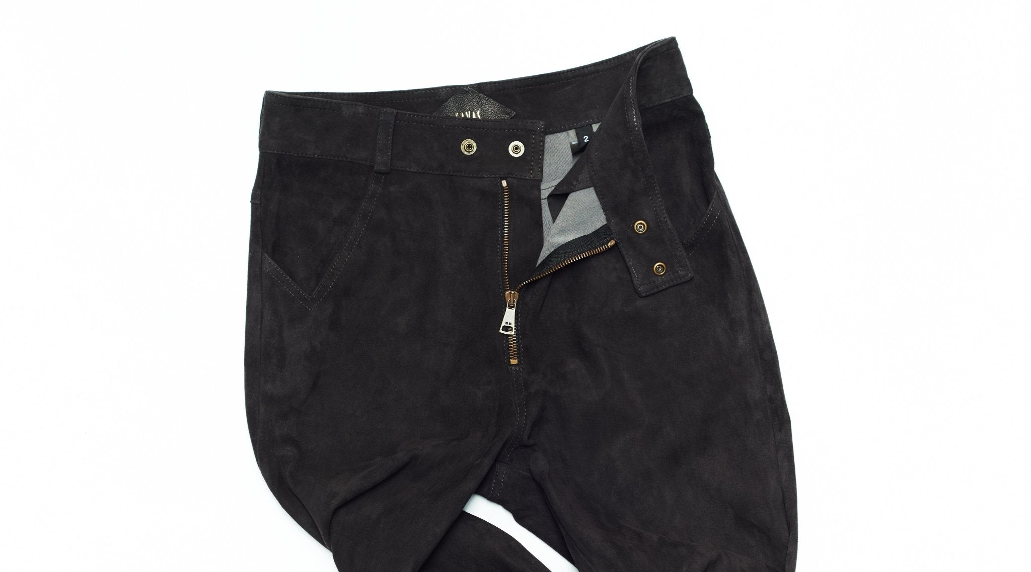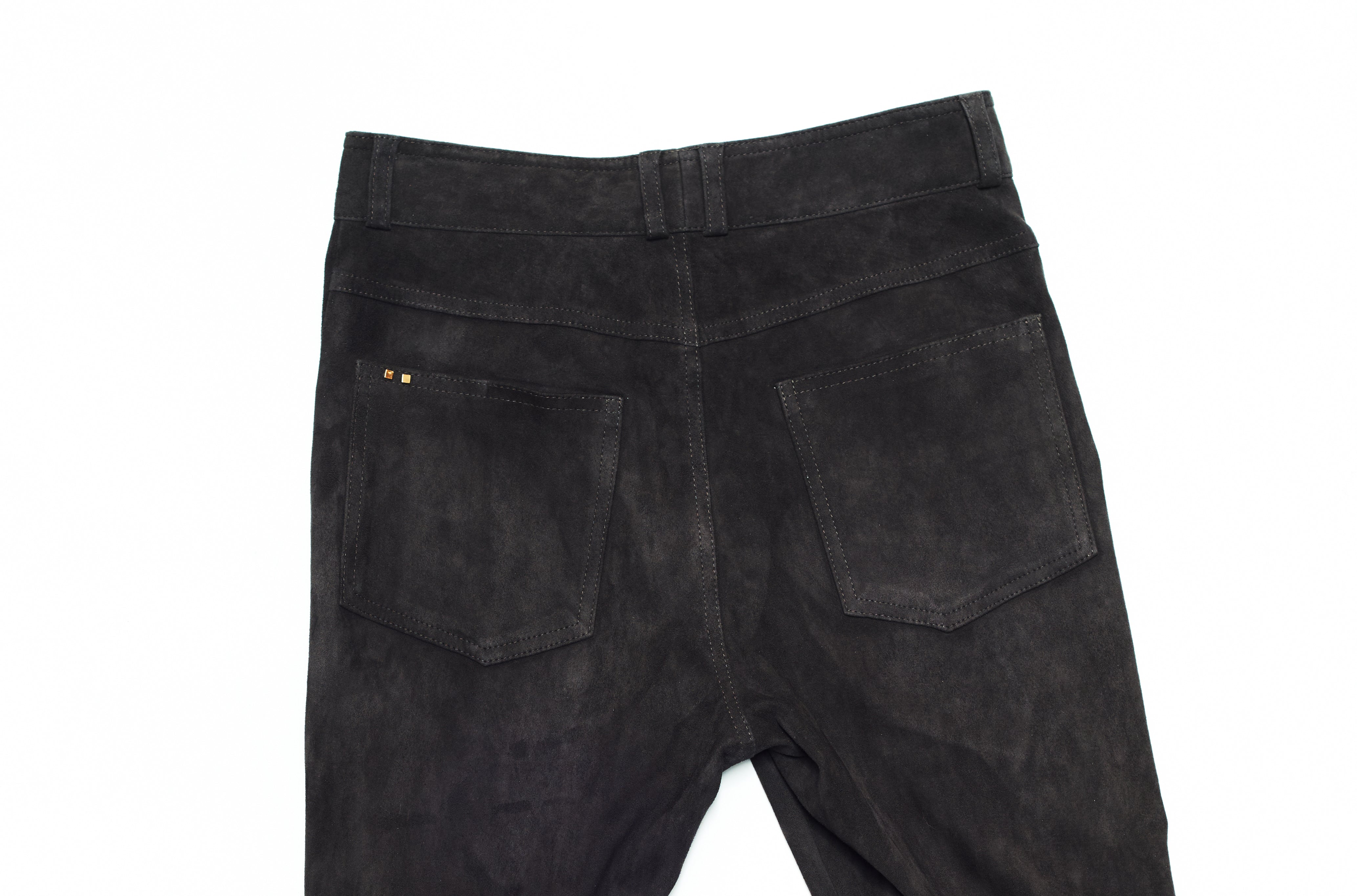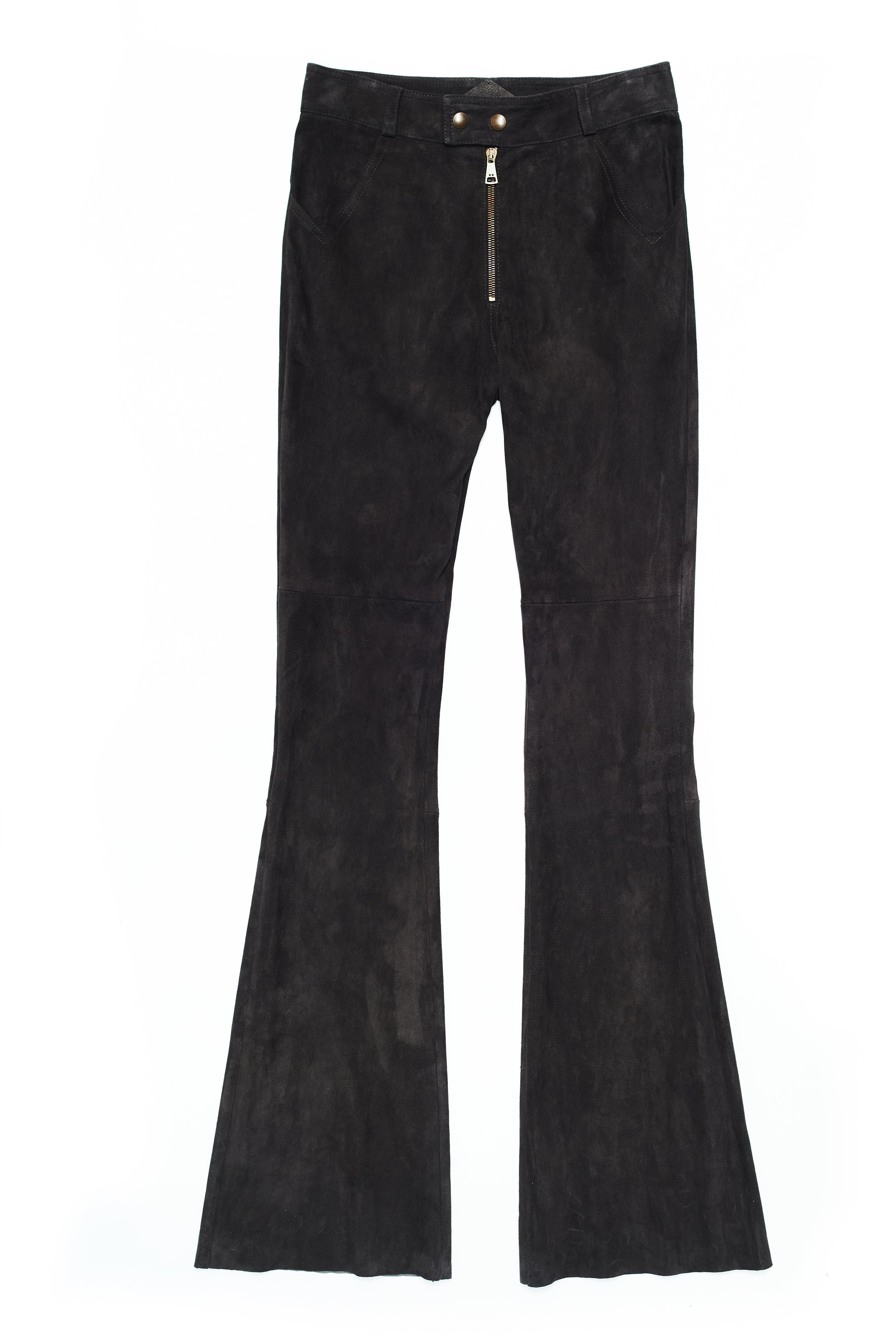The Marianne jean is crafted in a super-stretch lamb suede, allowing for pure comfort and an elegant flared silhouette.  The high waistline is pulled together by a front-snap closure and our signature checkmark pocket shape. With two back pockets and belt loops, these pants are made for everyday luxury.