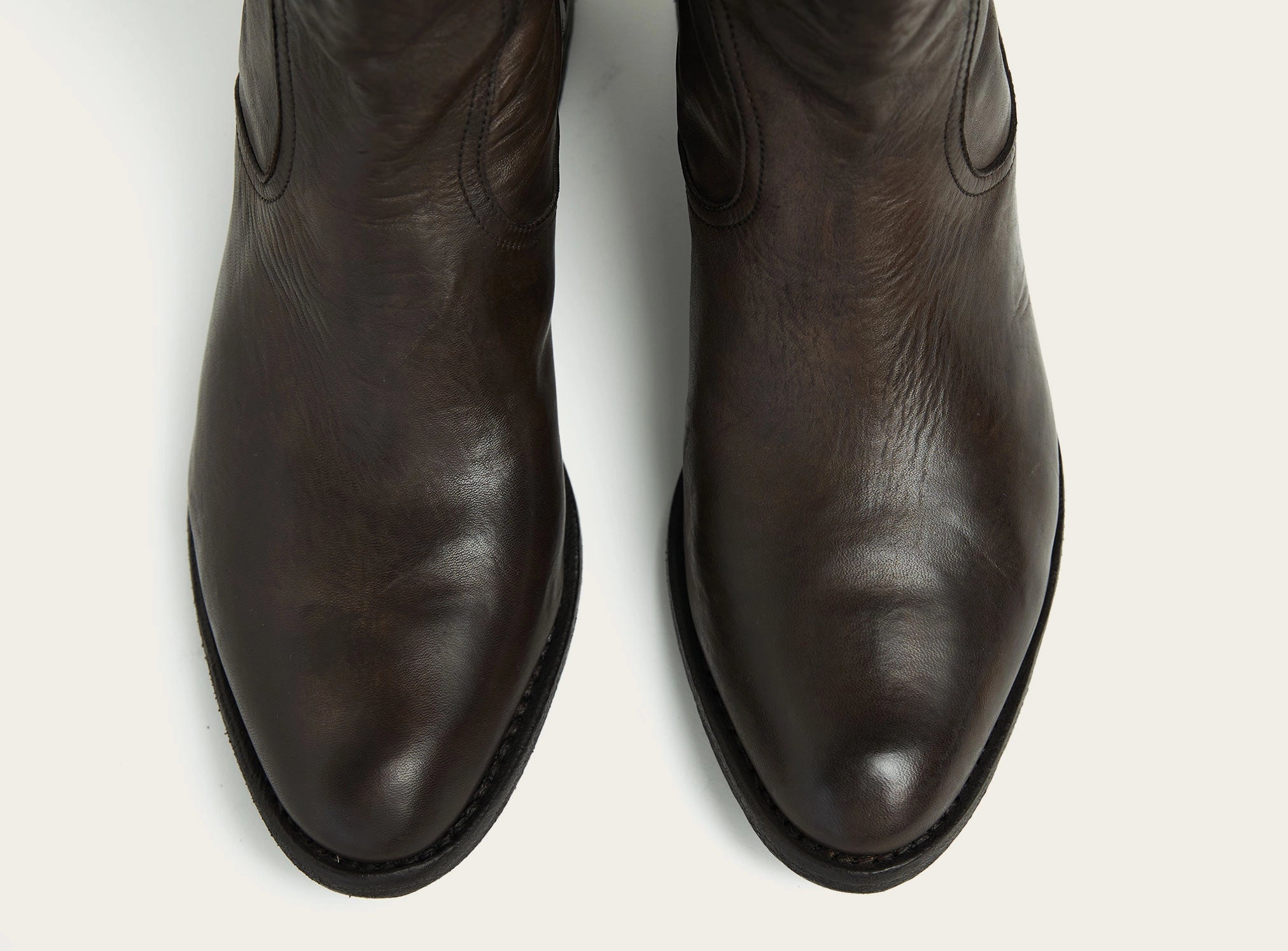 Each pair features an almond-toe shape, a smooth S-Curve, antique brass zip up the back, and our signature "Two Points" Brass rivets. The Legend Boot is available in Men's and Women's sizes.