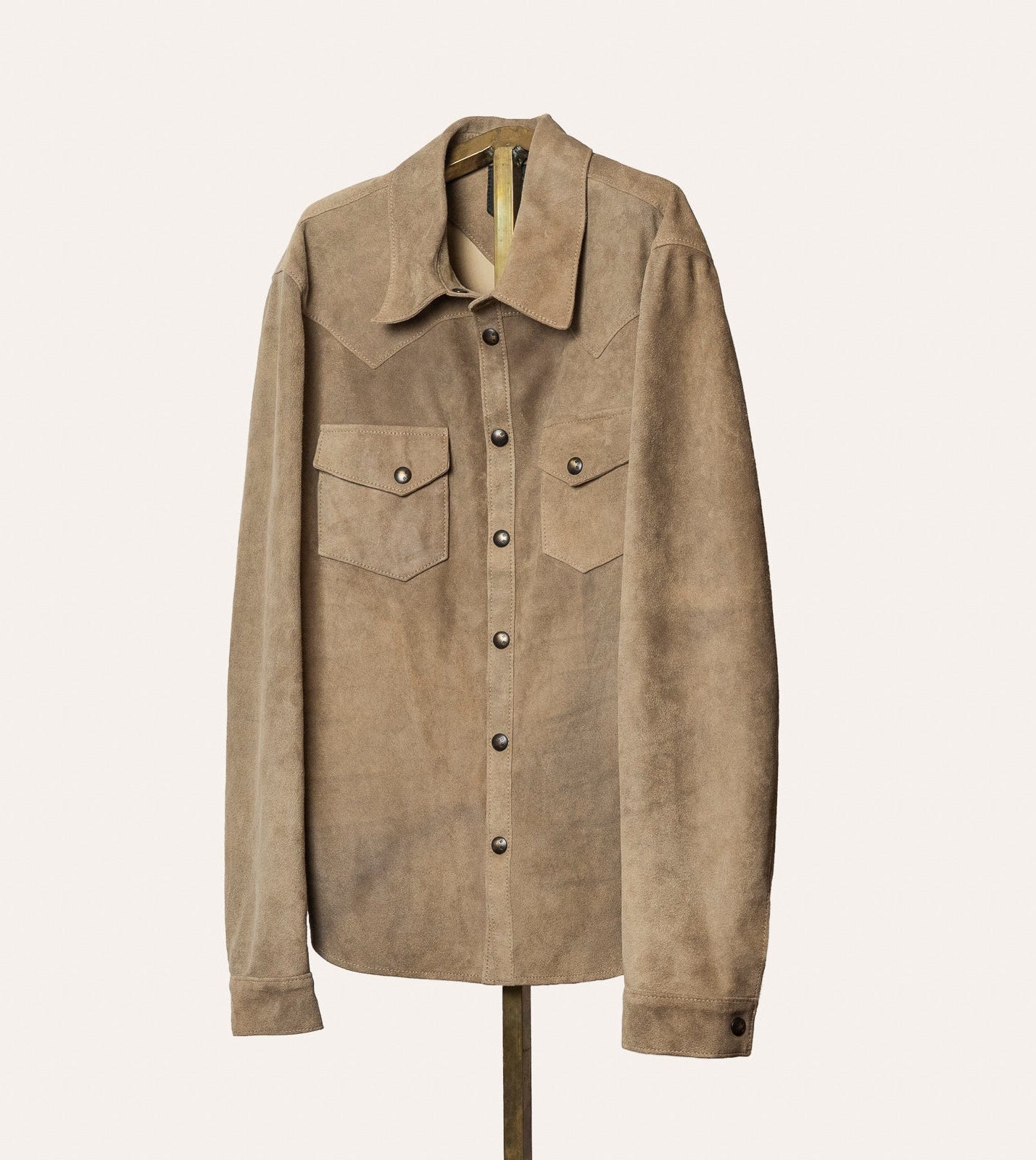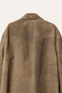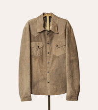 The Lowry shirt jacket is a light weight, year round piece. The unlined construction allows for you to feel the smooth leather interior, and shows meticulously crafted details. This unstructured design is extremely soft, and lets the jacket take shape to your body over time. Each piece is cut and made by hand, therefore it will have its own distinctive characteristics.