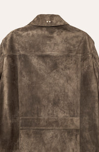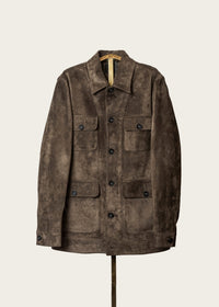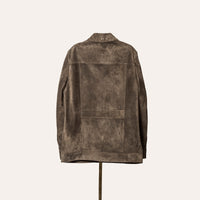 The Irving is hand-constructed in Italy with 6mm chrome tanned, Wedgewood Calf, New Zealand-sourced suede chosen for its distinct leather and suede sides. There are no secrets here—this skin is completely natural and naked. The body has a boxy, relaxed shape and is unlined for a fluid, unburdened drape. The sleeves are lined to make wearing it over a shirt or sweater a sensual pleasure. With two chest pockets, two hip pockets, a right side internal chest pocket, and a left side internal pocket behind the hip.