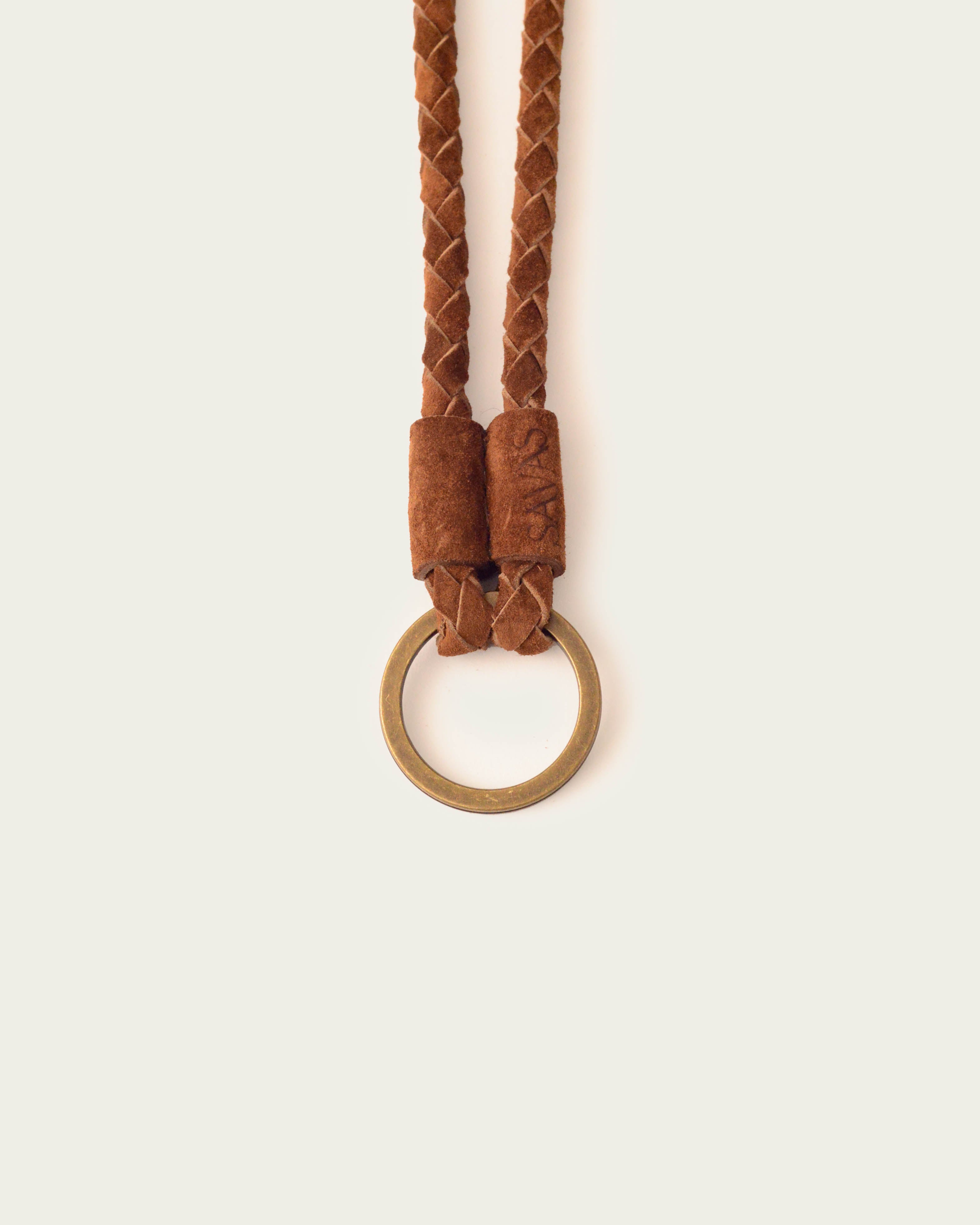 Crafted with precision, featuring a weighted 1.5-inch brass 'Lasso' ring nestled in hand-cut, hand-braided leather. Choose from 6 & 18-inch lengths and color options: Black, Walnut, Cognac, and Saffron.